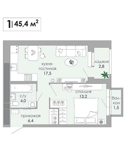 Квартиры с мастер-спальней, просторной кухней-гостиной и гардеробной